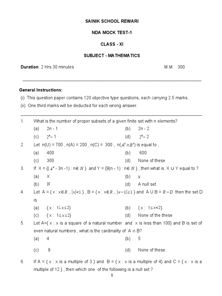 Nda Test Maths 1 Pdf Mean Sine